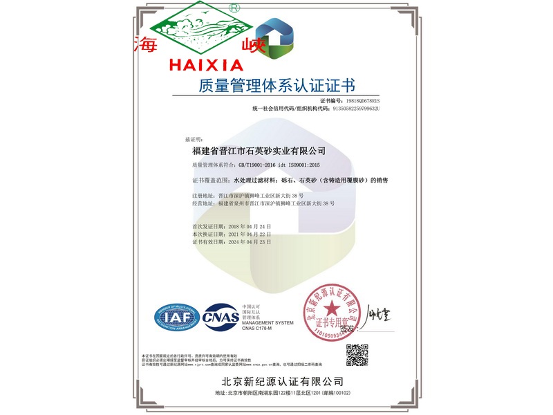 質(zhì)量管理體系認證證書(shū) 英文證書(shū)